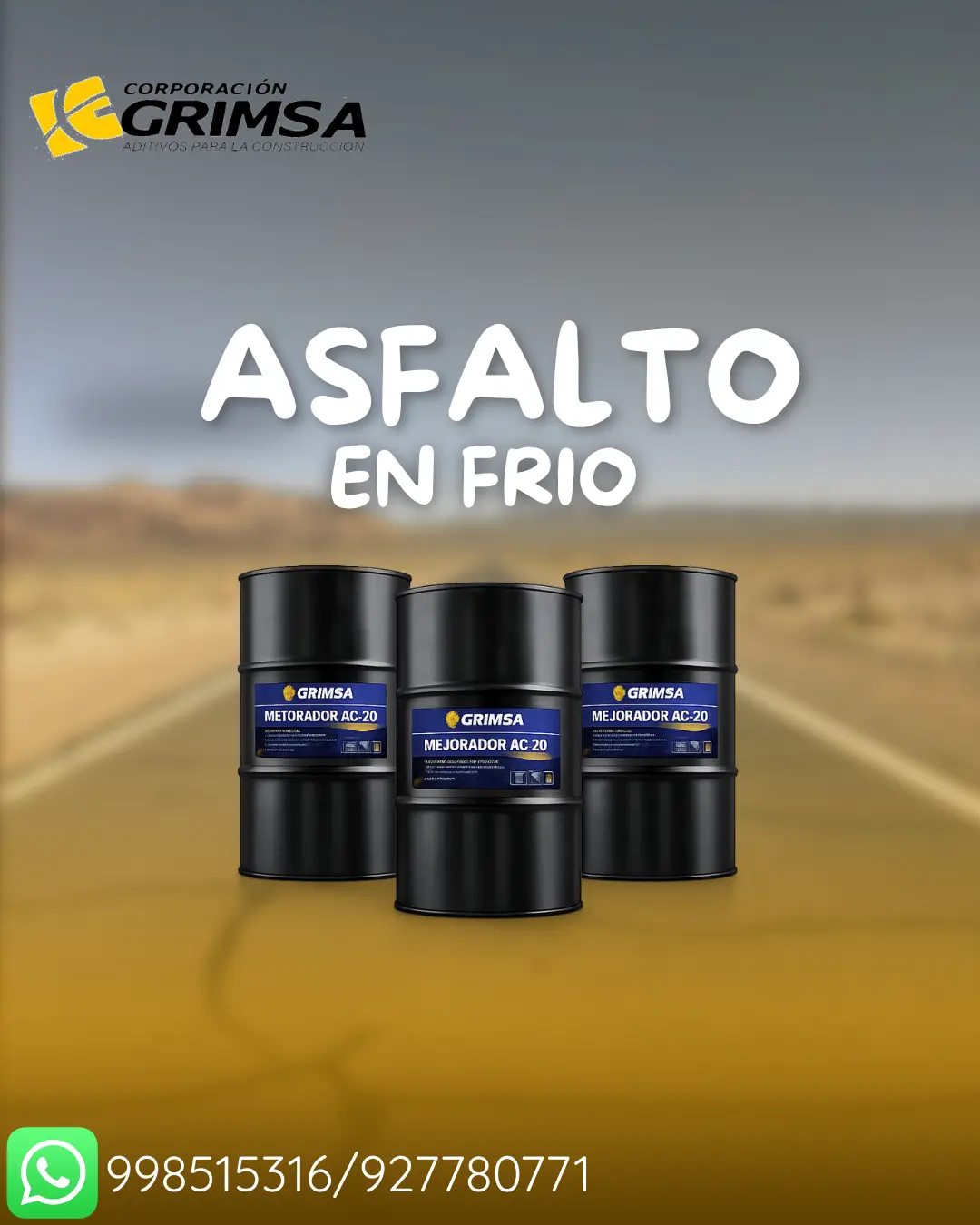 El Asfalto en Frío GRIMSA es un producto listo para usar que permite realizar reparaciones viales de forma rápida y efectiva, incluso en zonas de difícil acceso o en trabajos de emergencia. Gracias a su formulación con Mejorador AC-20, ofrece excelente adherencia, alta resistencia al tránsito y mayor durabilidad frente a condiciones climáticas adversas. Aplicaciones Reparación de baches Sellado de grietas Relleno de zanjas Beneficios No requiere calentamiento Fácil aplicación Ahorro de tiempo y costos Contáctanos y solicita tu cotización WhatsApp: 998515316 / 927780771 Corporación GRIMSA Aditivos para la Construcción
