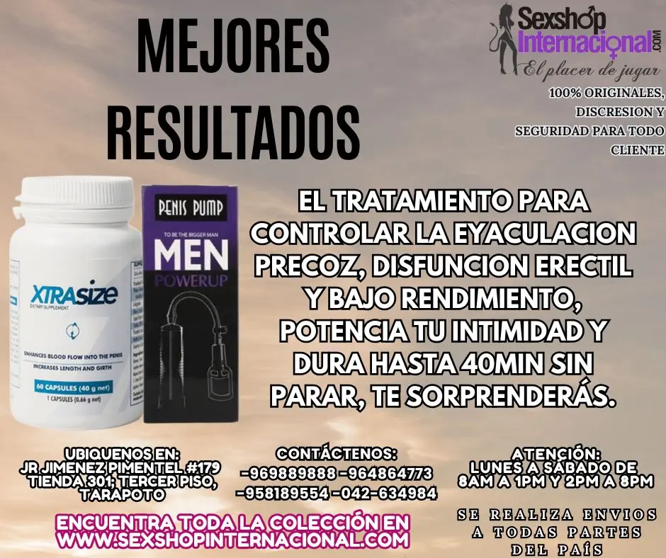 Envios a todas partes del país. mejora tu ambito sexual y potencia tu rendimiento tarapoto sextoys EL TRATAMIENTO PARA CONTROLAR LA EYACULACION PRECOZ, DISFUNCION ERECTIL Y BAJO RENDIMIENTO, POTENCIA TU INTIMIDAD Y DURA HASTA 40MIN SIN PARAR, TE SORPRENDERÁS. Visitenos en nuestra tienda y velo por ti mismo, que no te lo cuenten. SEXSHOP INTERNACIONAL TARAPOTO Nos puede ubicar en el Jr. Jimenez Pimentel #179 Tienda -301 Tercer Piso- TARAPOTO-PERU REF:ALTURA PLAZA DE ARMAS COSTADO DE CAJA HUANCAYO Realizamos envíos a nivel nacional e internacional. https://sexshopinternacional.com/ www.sextoyslima.com www.tiendasamor.com www.fantasiasexsual.com