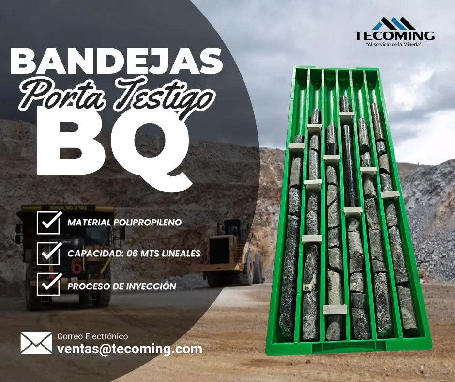 BANDEJA PORTA TESTIGO BQ MINERÍA Y EXPLORACIÓN Fabricantes nacionales de bandejas porta testigo línea BQ, diseñadas para almacenamiento, registro y transporte seguro de muestras geológicas de perforación diamantina. Altos estándares de calidad comprobados para el sector minero y geológico. CARACTERÍSTICAS TÉCNICAS Línea: BQ Capacidad: 6 metros lineales de testigo Material: Polipropileno (PP) de alta resistencia Resistencia: Superior frente a impactos, humedad, rayos UV y condiciones extremas Proceso: Inyección plástica de precisión Diseño ergonómico y apilable con fondo reforzado Sistema de drenaje integrado Área lateral para rotulado o etiquetas Personalización: Diversos colores, etiquetado grabado o adhesivo Compatible con tapas y separadores línea BQ ACCESORIOS COMPLEMENTARIOS Tapa porta testigo Separadores / Tacos APLICACIONES Exploración minera superficial y subterránea Perforación diamantina BQ Laboratorios geológicos y áreas de registro de testigos Contáctanos: WhatsApp / Celular: ( 51) 922 111 541 ( 51) 939 785 833 ( 51) 941 691 656 Teléfono fijo: (01) 480 5856 Correo: ventas@tecoming.com Web: www.tecoming.com #MineriaSostenible #PerforacionDiamantina #MineriaDelFuturo #BandejasPortaTestigo #BandejasGeologicas #PortatestigosMineros #TraysParaMuestras