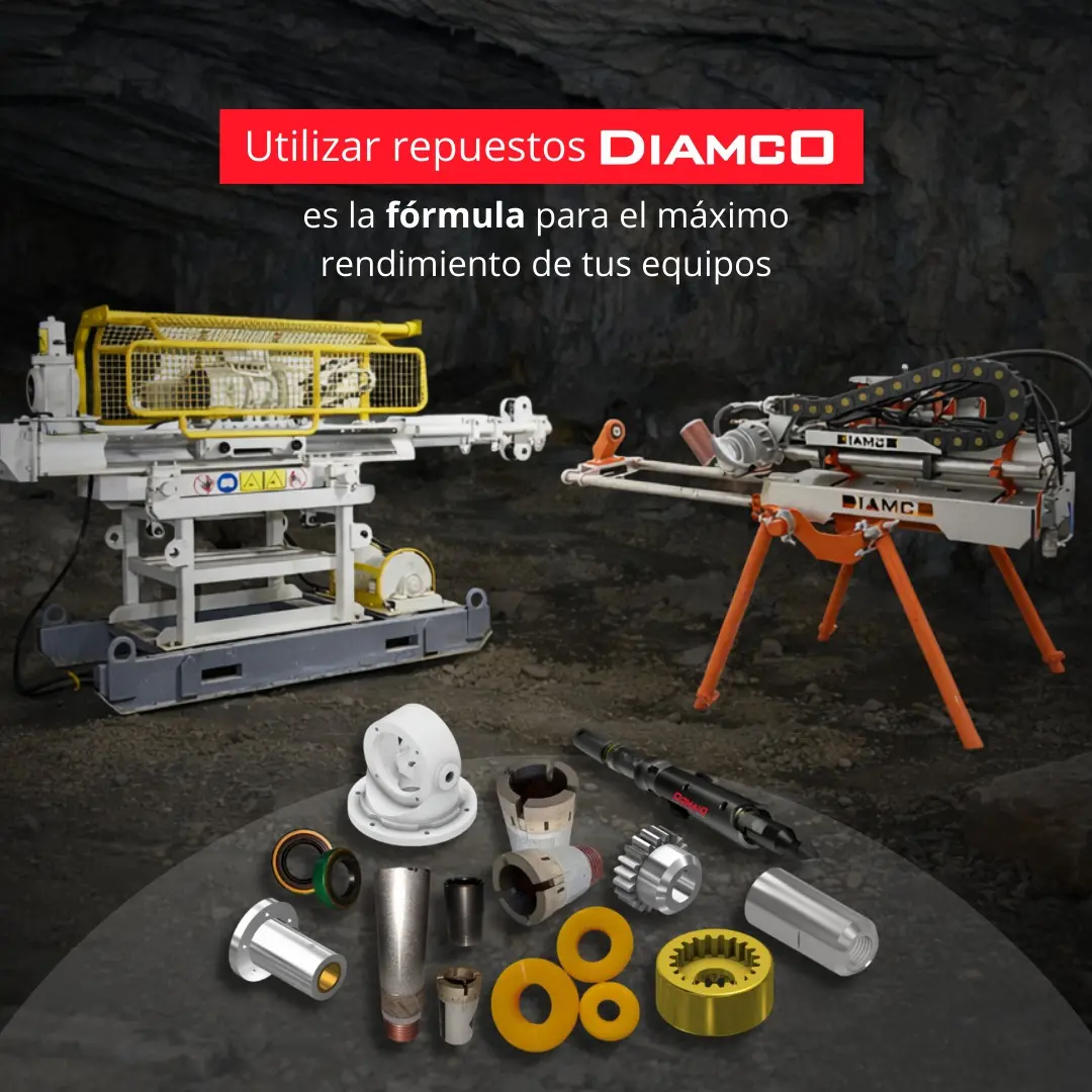 En DIAMCO ofrecemos una amplia gama de repuestos y componentes de alta precisión, fabricados con estándares industriales para soportar las condiciones más exigentes de la exploración minera, geotecnia y perforación diamantina. Repuestos disponibles: Componentes neumáticos Rotores y paletas (vane) Bujes, casquillos y acoples Engranajes y piezas mecanizadas Accesorios y consumibles para perforadoras diamantinas Repuestos compatibles con equipos DIAMCO y modelos similares