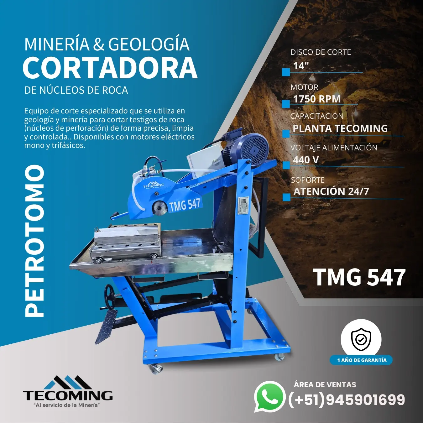 Las cortadoras TMG-547 representan el estándar industrial mundial para corte de bloques en minería y construcción. Disponibles con motores eléctricos mono y trifásicos, cuentan con estructura de acero reforzada y sistemas de transporte integrados que aseguran durabilidad durante el traslado. Su capacidad para discos de 24", bandejas de agua extendidas y marco posterior abierto permite procesar materiales de gran tamaño, mientras que el cabezal equilibrado facilita el control preciso de profundidad. -MODELO DEL EQUIPO: TMG 547 -LONGITUD: 67 (1690mm) -ANCHO: 27 (690mm) -ALTURA: 69 (1760mm) -PESO SIN EMBALAJE: 440lbs (200KG) Contáctanos: WhatsApp / Celular: ( 51) 922 111 541 ( 51) 939 785 833 ( 51) 941 691 656 ( 51) 945 901 699