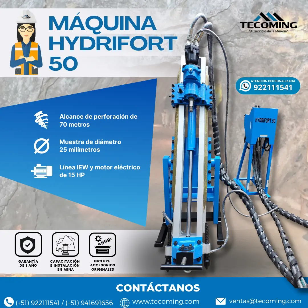Equipo neumático de alta eficiencia diseñado para recolección de vetas, testigos y muestras geológicas en exploración y perforación minera. CARACTERÍSTICAS TÉCNICAS Alcance de perforación: Hasta 50 metros Diámetro de muestra: 23 mm Perforación en todos los ángulos (positivos y negativos) Sistema de operación: Compresora de aire 250 CFM Diseño ergonómico que reduce fatiga del operador Construcción robusta con componentes de alta resistencia SERVICIO POST-VENTA Instalación y capacitación en mina por técnico especialista Garantía de 1 año por defectos de fabricación Manual técnico y de partes incluido Contáctanos: WhatsApp / Celular: ( 51) 922 111 541 ( 51) 939 785 833 ( 51) 941 691 656 ( 51) 945 901 699
