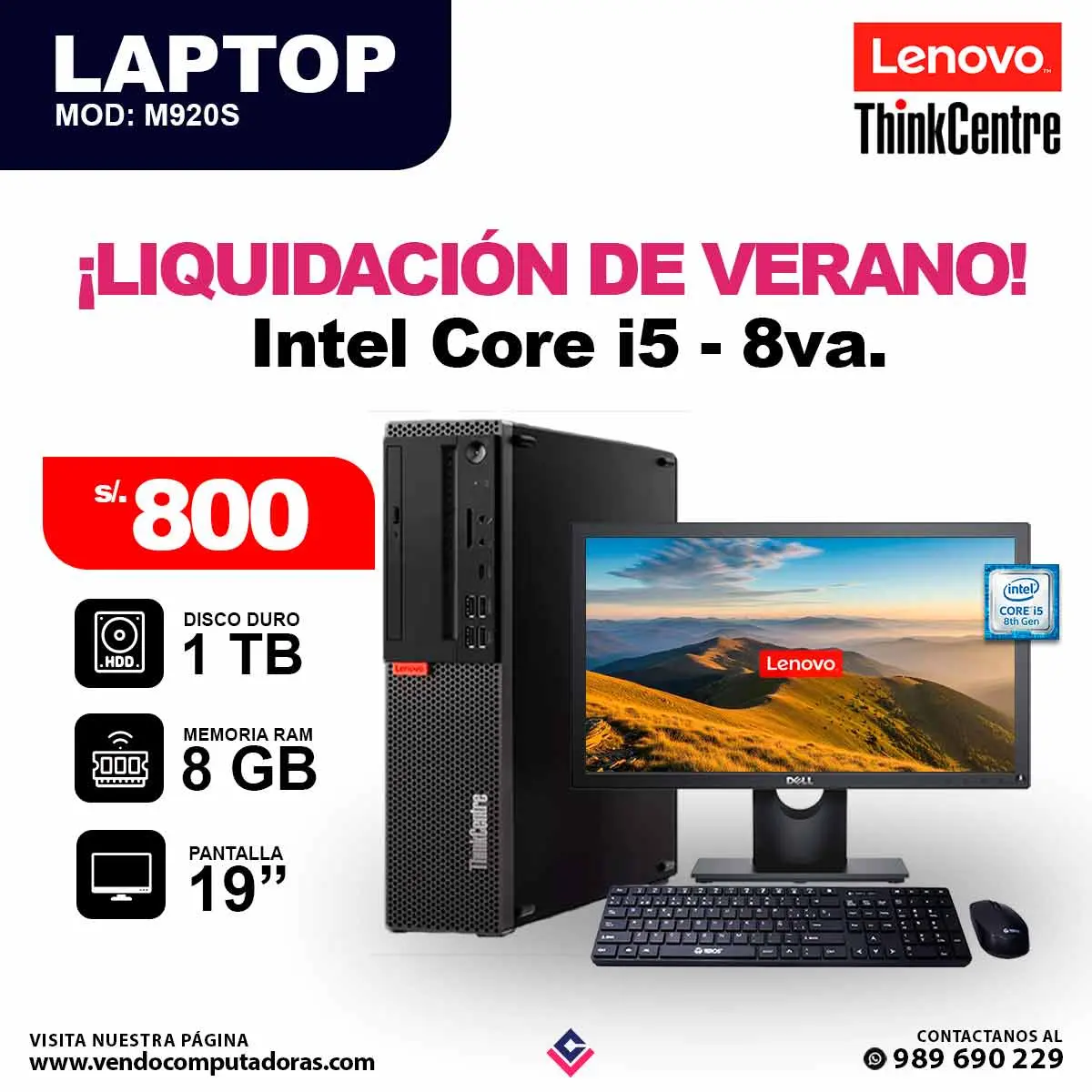 Conecta, crea y avanza. Especificaciones: Intel Core i5 8va. Gen | RAM 8 GB | HDD 1 TB | Modelo: M920S Pantalla: 19 Lista para usar desde el primer minuto Mouse y teclado ¡Gratis! Ideal para trabajo, estudio u oficina Entrega rápida en Lima Garantía asegurada Escríbenos al 989 690 229 ¡No te quedes sin la tuya!