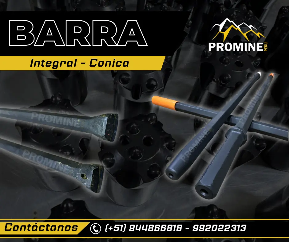 Aceros de perforación para avance en roca dura. Máxima transmisión de energía y resistencia al desgaste. Solicita más información PROMINE - SEDE LIMA: Consultas: Móvil | WhatsApp Celular: 944866818 - https://wa.link/bkcrr3 Correo: ventas@promineperu.com