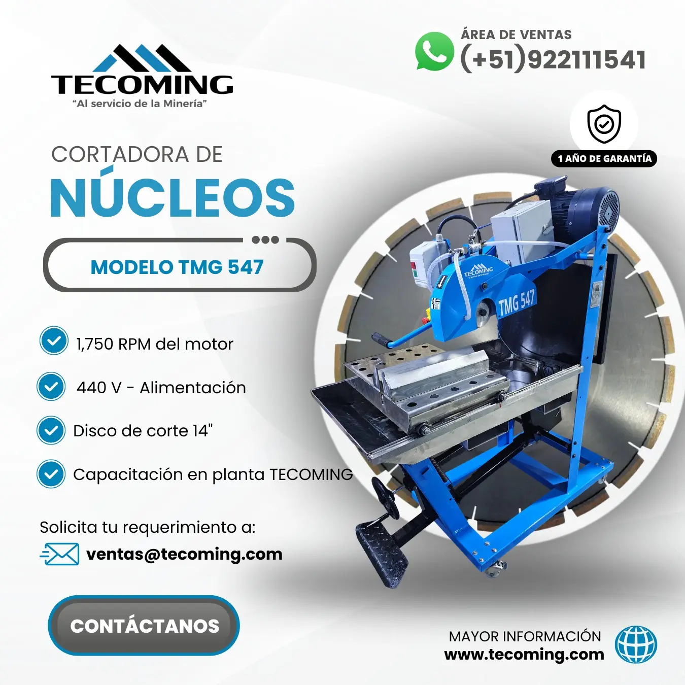 Las cortadoras TMG-547 representan el estándar industrial mundial para corte de bloques en minería y construcción. Disponibles con motores eléctricos mono y trifásicos, cuentan con estructura de acero reforzada y sistemas de transporte integrados que aseguran durabilidad durante el traslado. Su capacidad para discos de 24", bandejas de agua extendidas y marco posterior abierto permite procesar materiales de gran tamaño, mientras que el cabezal equilibrado facilita el control preciso de profundidad. -MODELO DEL EQUIPO: TMG 547 -LONGITUD: 67 (1690mm) -ANCHO: 27 (690mm) -ALTURA: 69 (1760mm) -PESO SIN EMBALAJE: 440lbs (200KG) Contáctanos: WhatsApp / Celular: ( 51) 922 111 541 ( 51) 939 785 833 ( 51) 941 691 656 ( 51) 945 901 699