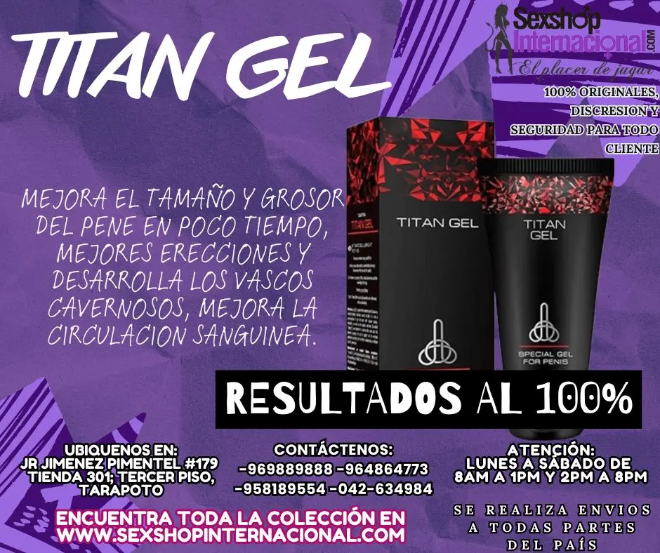 Envios a todas partes del país. GEL MAYOR TAMAÑO Y GROSOR TITAN GEL RAPIDO EFECTIVO TARAPOTO SEXTOYS MEJORA EL TAMAÑO Y GROSOR DEL PENE EN POCO TIEMPO, MEJORES ERECCIONES Y DESARROLLA LOS VASCOS CAVERNOSOS, MEJORA LA CIRCULACION SANGUINEA. Visitenos en nuestra tienda y velo por ti mismo, que no te lo cuenten. SEXSHOP INTERNACIONAL TARAPOTO Nos puede ubicar en el Jr. Jimenez Pimentel #179 Tienda -301 Tercer Piso- TARAPOTO-PERU REF:ALTURA PLAZA DE ARMAS COSTADO DE CAJA HUANCAYO Realizamos envíos a nivel nacional e internacional. https://sexshopinternacional.com/ www.sextoyslima.com www.tiendasamor.com www.fantasiasexsual.com