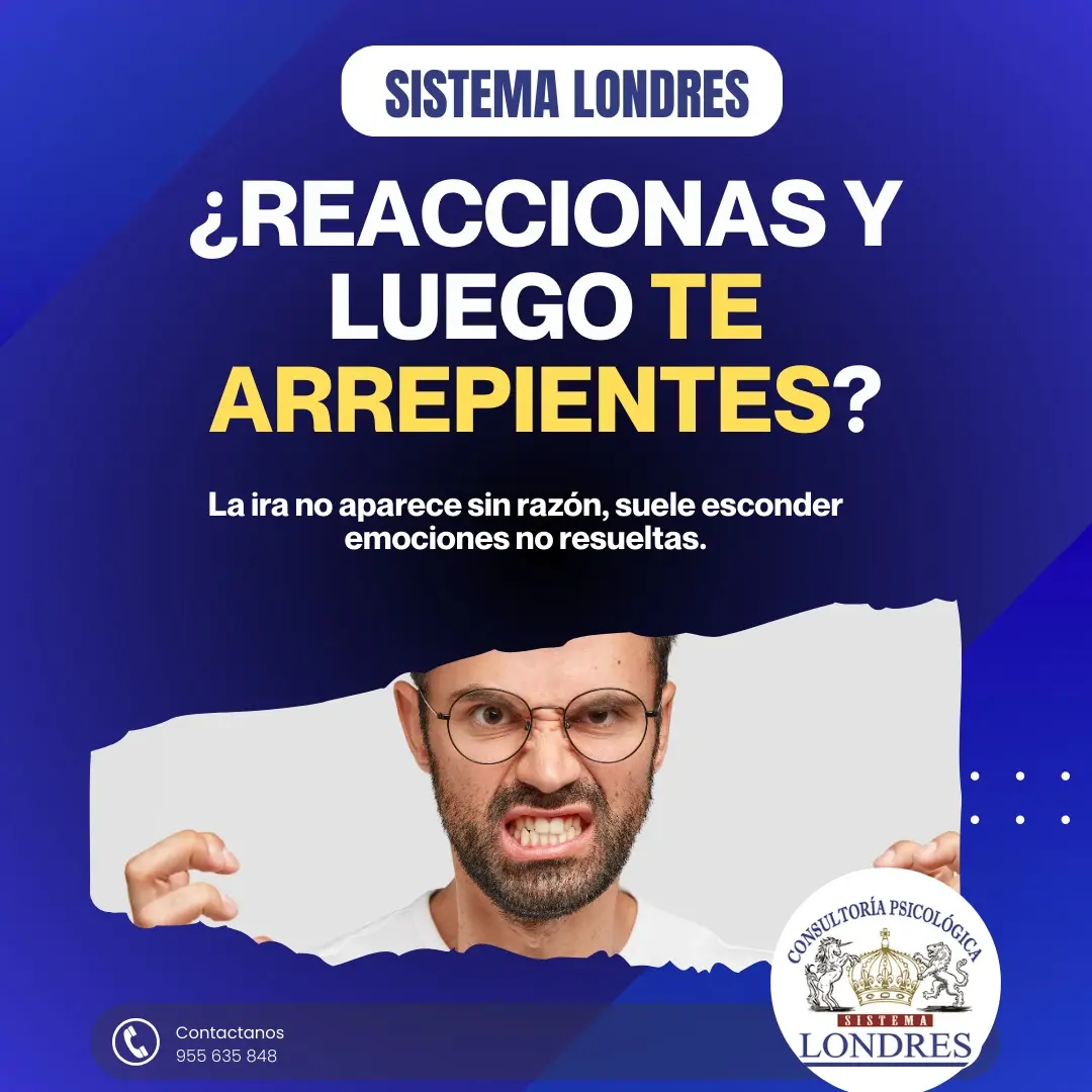 ¿REACCIONAS Y LUEGO TE ARREPIENTES? La ira no aparece sin razón muchas veces es el reflejo de emociones no resueltas, heridas del pasado o situaciones que se han acumulado en silencio. En Sistema Londres Consultoría Psicológica te ayudamos a: Comprender el origen de tu enojo Aprender a regular tus emociones Mejorar tus relaciones personales Tomar decisiones sin culpa ni arrepentimiento Reaccionar diferente sí es posible. Con acompañamiento profesional puedes transformar la ira en crecimiento. Agenda tu cita: 955 635 848 Atención personalizada Sistema Londres Porque tu bienestar emocional sí importa.