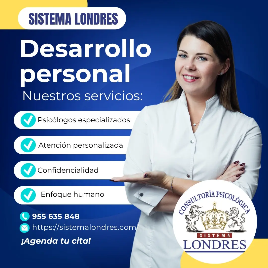 En Sistema Londres te ofrecemos un espacio terapéutico seguro y profesional, orientado al desarrollo personal y al bienestar emocional. Nuestro equipo de psicólogos especializados trabaja con un enfoque integral, respetuoso y ético, adaptado a las necesidades de cada persona. Brindamos: - Psicólogos especializados - Atención personalizada - Confidencialidad garantizada - Enfoque humano y empático Te acompañamos en tu proceso de autoconocimiento, fortalecimiento emocional y crecimiento personal, respetando tu ritmo y tu historia. Teléfono: 955 635 848 https://sistemalondres.com ¡Agenda tu cita hoy!