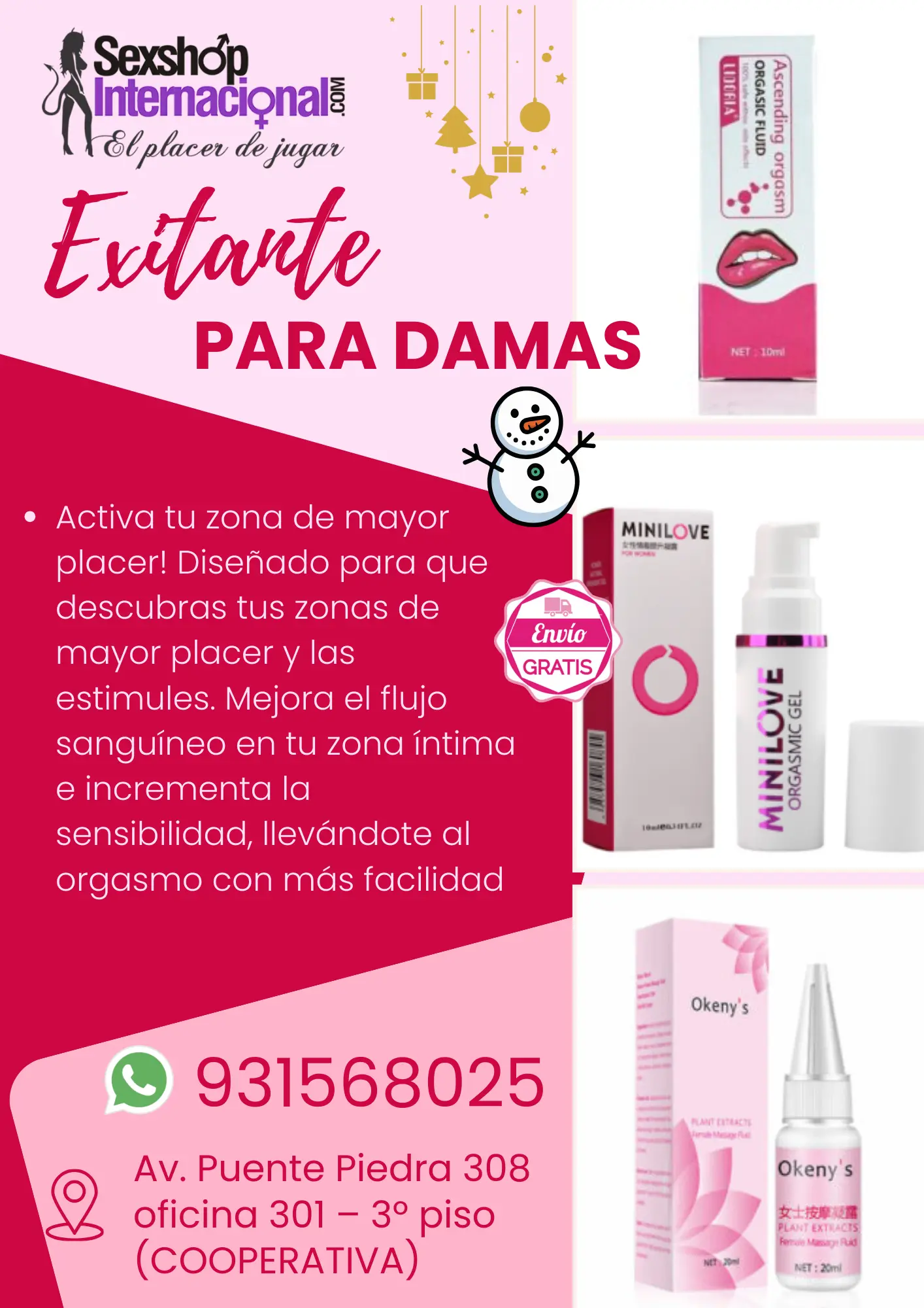 Descripción PEDIDOS E INFORMES: 969889888 - (01) 3338799 - 964 864 773 931568025 SE REALIZAN ENVIOS A NIVEL NACIONAL ATENDEMOS DE 9AM A 8PM DE LUNES A SÁBADO NUESTRA TIENDA FISICA: Av. Puente Piedra 308 oficina 301 3º piso (COOPERATIVA) VISITA NUESTRAS SEDES: LOS OLIVOS 1 Y 2: Av. Alfredo Mendiola 3849 Tienda 06 (Costado de Tambo Galería Dolaris - Frente a Metro) Jr. sol de Oro 2173 Altura del Paradero Pilas (por el Mdo el Trebol Plaza Norte) PLAZA NORTE: Av. Alfredo Mendiola 1929 Tda 201 Piso 2 (Frente a Plaza Norte) PUENTE PIEDRA 1 Y 2: Av. Puente Piedra 241 Tienda 02 (Costado de Stanford) Av. Puente Piedra 308 oficina 301 3º piso PRIMERA DE PRO: Av. Alfredo Mendiola 7923 (Frente al Mdo Unicachi) INFORMATE SOBRE NUESTRO CATALOGO EN: Sexshopinternacional.com Tiendasamor.com Nutricionsexualforte.com Fantasiasexsual.com Potenciasexualforte.com Testoultraperu.com Sextoyslima.com Anabolicrx24peru.com Anabolicrx24.com Oficialtitangel.com Alfamanperu.com Testo360peru.com Vigrx.pe Vigor360oficial.com Bioprostoriginal.com g