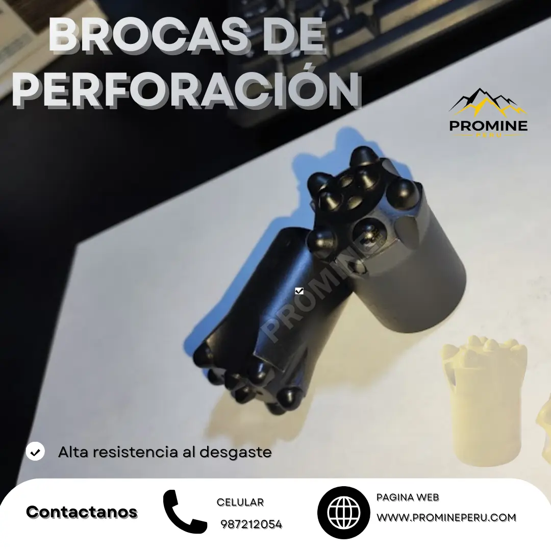 Las brocas de perforación penetran con eficacia distintos tipos de roca, manteniendo rendimiento y durabilidad. Ideales para trabajos de minería y construcción exigentes. PROMINE Consultas: Móvil | WhatsApp Celular: 987212054 - https://wa.link/7h770l Celular: 968712557 - https://wa.link/hbiyxd Celular: 992022313 - https://wa.link/cxff32 Correo: ventas@promineperu.com