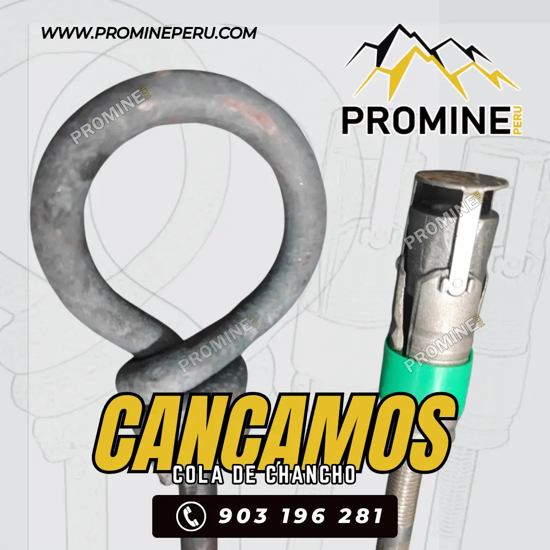 Los pernos colgantes o soportes cáncamos como se les conoce, sirven para el soporte de cables eléctricos, tuberías de agua, alumbrado y ventilación, etc. PROMINE PERU Teléfono: (511) - 7584483 Celular: 903196281 E-mail: ventas@promineperu.com AREQUIPA-PERÚ Www.promineperu.com