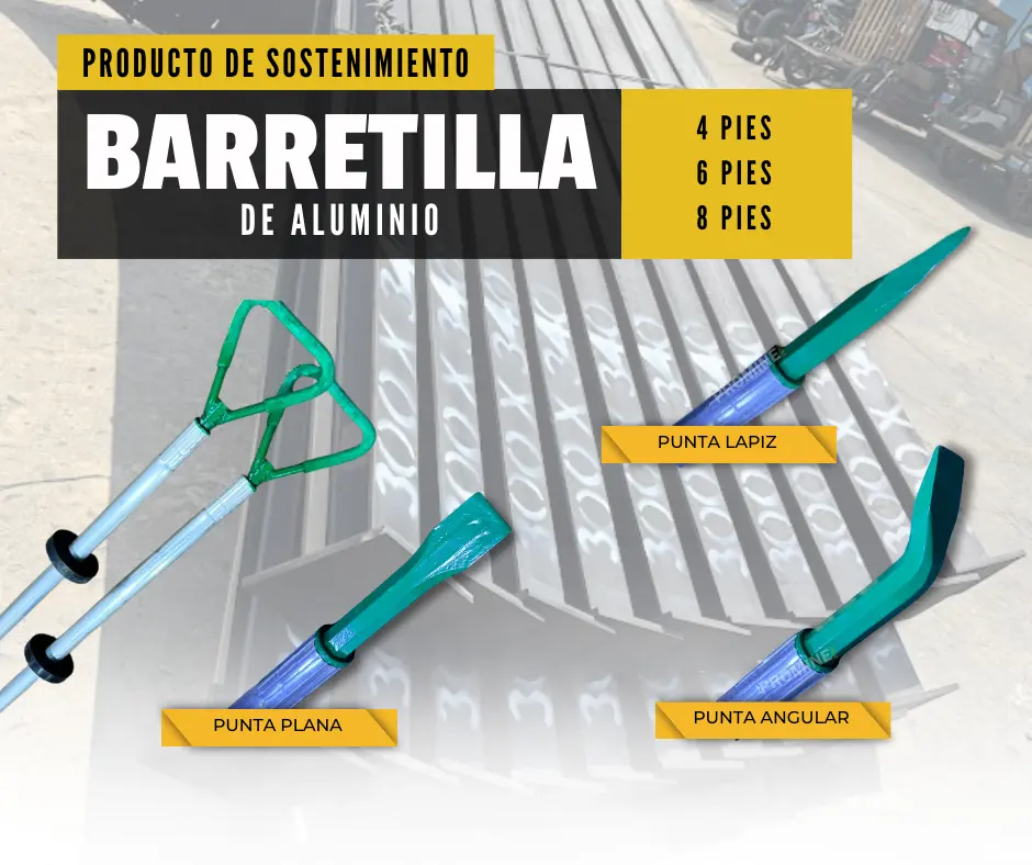 Herramienta esencial para trabajos de desatado de rocas en minería subterránea. Las barretillas de aluminio ofrecen resistencia, ligereza y seguridad en labores mineras. Disponibles en diferentes medidas. Solicita más información PROMINE - SEDE LIMA: Consultas: Móvil | WhatsApp Celular: 944866818 - https://wa.link/bkcrr3 Celular: 987212054 - https://wa.link/7h770l Celular: 968712557 - https://wa.link/hbiyxd Celular: 992022313 - https://wa.link/cxff32 Correo: ventas@promineperu.com Catalogo: https://heyzine.com/flip-book/5eb58e72af.html