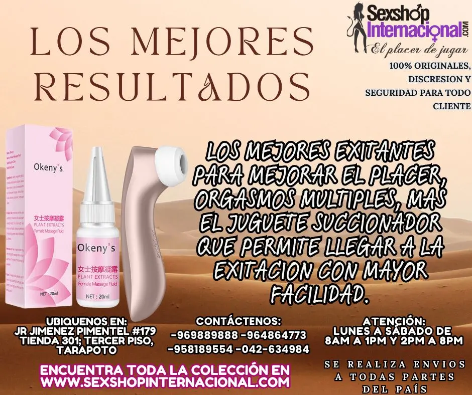 Envios a todas partes del país. LOS MEJORES JUGUETES ORGASMICOS EN TARAPOTO SEXTOYS LOS MEJORES EXITANTES PARA MEJORAR EL PLACER, ORGASMOS MULTIPLES, MAS EL JUGUETE SUCCIONADOR QUE PERMITE LLEGAR A LA EXITACION CON MAYOR FACILIDAD. Visitenos en nuestra tienda y velo por ti mismo, que no te lo cuenten. SEXSHOP INTERNACIONAL TARAPOTO Nos puede ubicar en el Jr. Jimenez Pimentel #179 Tienda -301 Tercer Piso- TARAPOTO-PERU REF:ALTURA PLAZA DE ARMAS COSTADO DE CAJA HUANCAYO Realizamos envíos a nivel nacional e internacional. https://sexshopinternacional.com/ www.sextoyslima.com www.tiendasamor.com www.fantasiasexsual.com