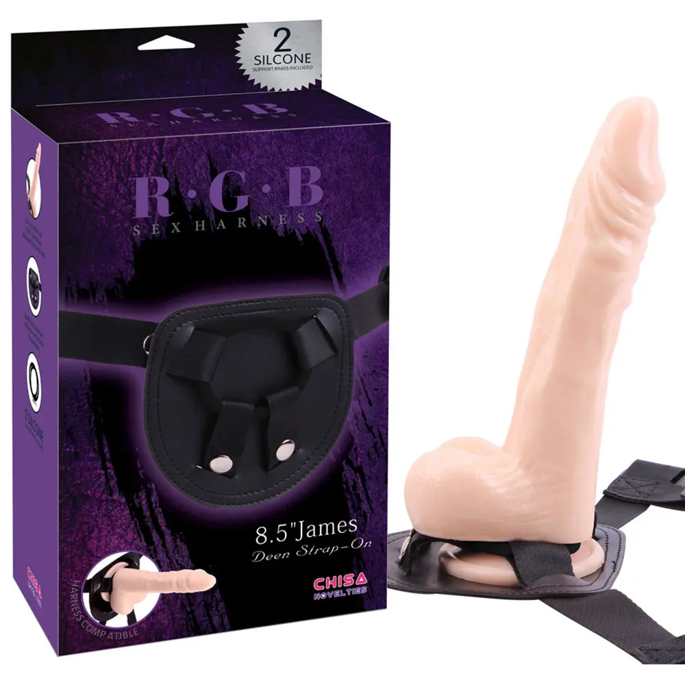 PROTESIS CONSOLADOR JAMES DEEN 8.5. Las prótesis son de material látex es para mujer y el hombre introduzca el pene de pura silicona y le sirva como soporte artificial durante la relación intima viene con correas ajustables y con la cual se puede graduar según la intensidad del momento.