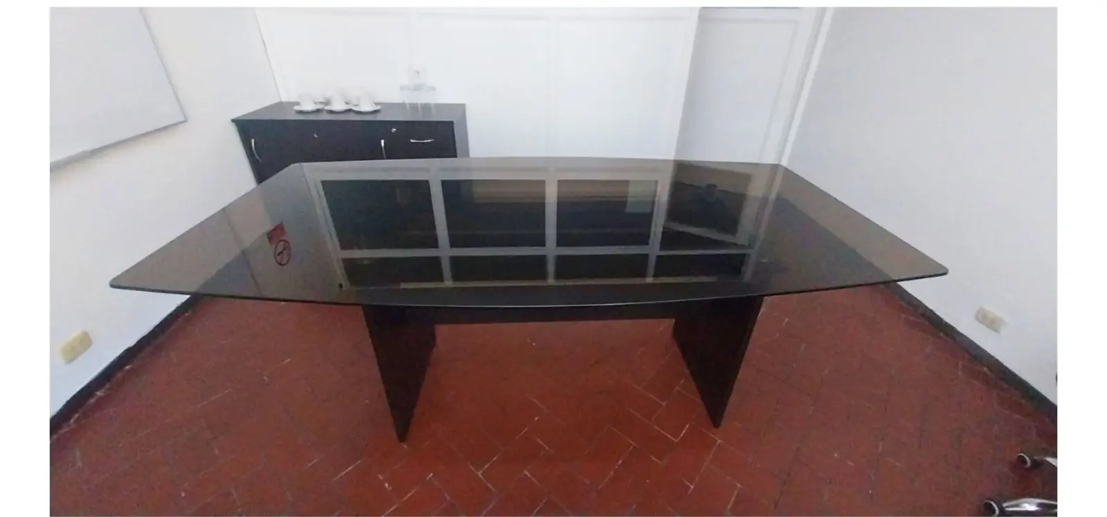 Mesa de vidrio en buen estado, ideal para oficina o sala de reuniones. Medidas: 2.00 m de largo x 1.00 m de ancho x 77 cm de alto. Incluye 06 sillas ejecutivas semi nuevas, cómodas y funcionales. Precios: Mesa: S/ 800.00 Sillas: S/ 120.00 c/u (precio negociable) * Ubicación: Miraflores Calle Porta 170, interesados comunicarse al 962-752-622