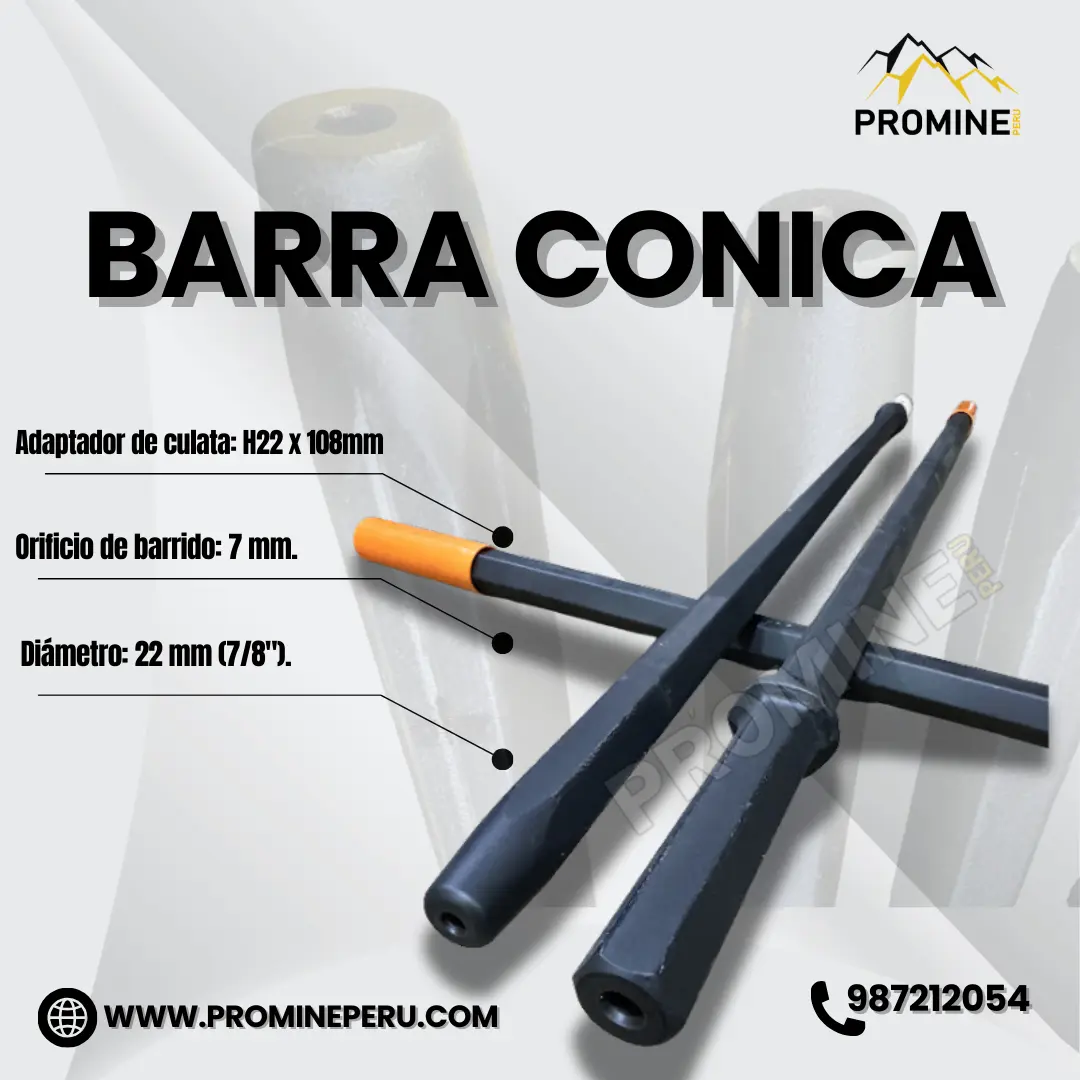 Diseño especializado que permite una conexión firme entre barra y broca, mejorando la eficiencia y estabilidad durante la perforación. PROMINE Consultas: Móvil | WhatsApp Celular: 987212054 - https://wa.link/7h770l Celular: 968712557 - https://wa.link/hbiyxd Celular: 992022313 - https://wa.link/cxff32 Correo: ventas@promineperu.com