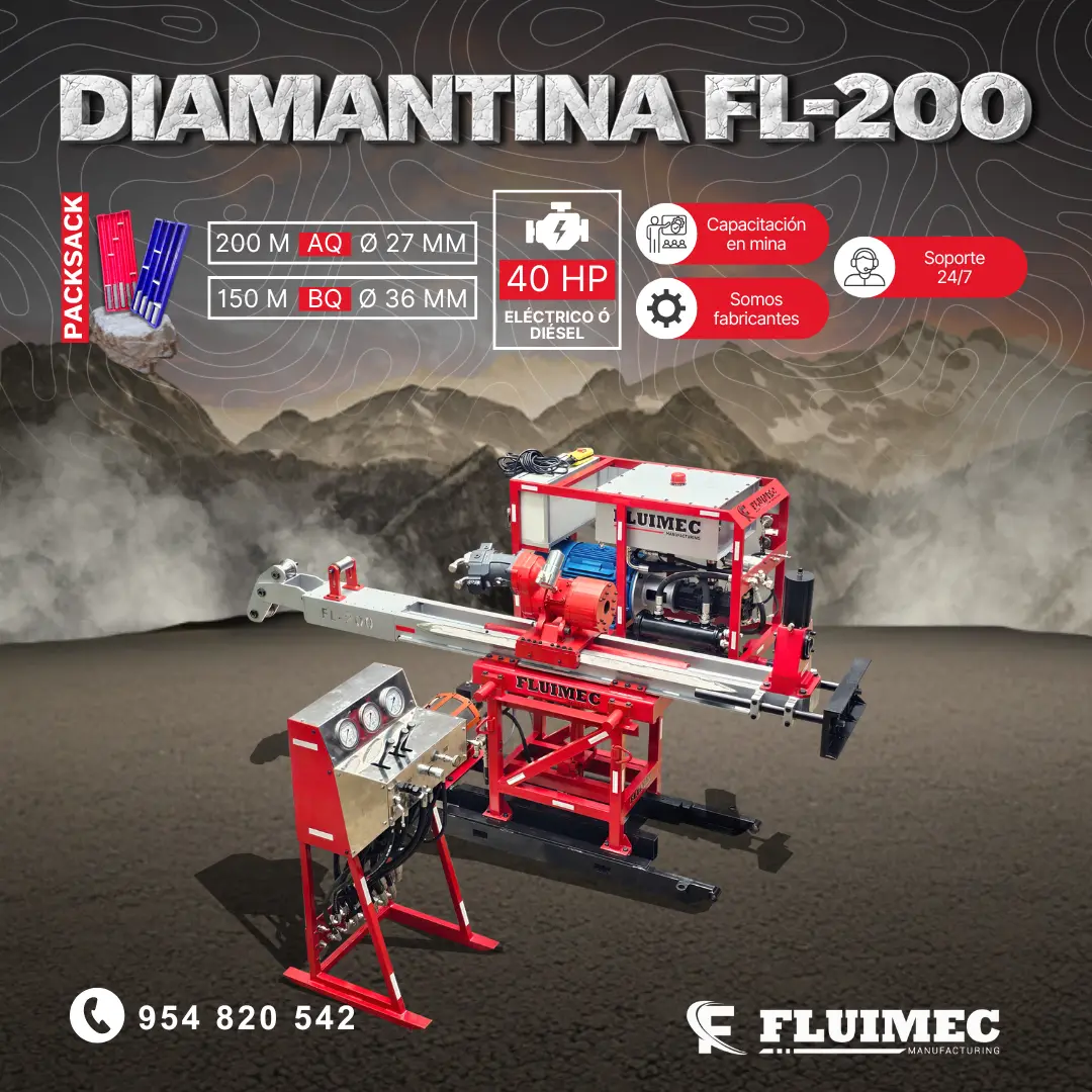PERFORADORA PACKSACK FL-200 Explora hasta 200 m en AQ y 150 m en BQ, con testigos de 27 mm y 36 mm. Potencia de 40 HP, ideal para perforaciones exigentes con alta eficiencia. Somos Fluimec, fabricantes y distribuidores de la marca Packsack. Garantizamos el stock permanente de accesorios y repuestos originales. ¡SOLICITA TU COTIZACIÓN AHORA! 51 954 820 542 | https://wa.link/1fjjh6 cotizaciones@fluimec.com www.fluimec.com www.packsack.com.pe Videos: https://www.youtube.com/watch?v=dFsVyOpYQ-g https://www.youtube.com/watch?v=FMDZu-_5D-c Capacitación en mina gratuita - Garantía 1 año