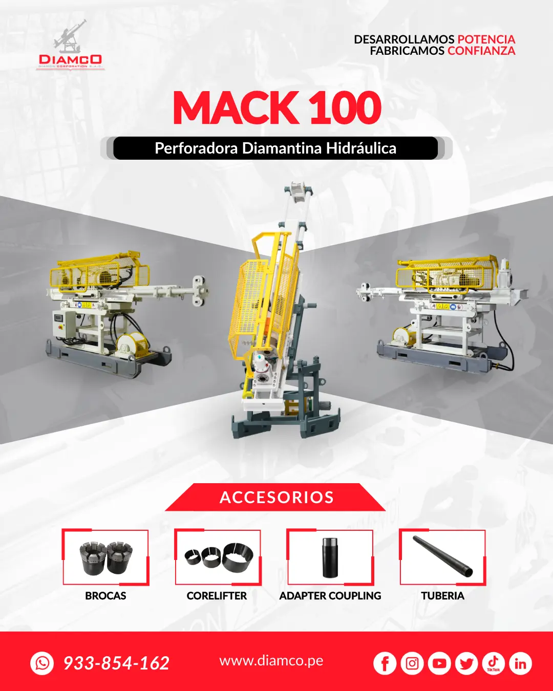 En DIAMCO SAC brindamos soluciones completas para la minería y exploración geológica, acompañando tu proyecto de inicio a fin con tecnología confiable y soporte especializado. Perforación diamantina en superficie e interior mina Mantenimiento y revisión de equipos diamantinos Equipos de perforación robustos y de alto rendimiento Accesorios y repuestos para máxima operatividad