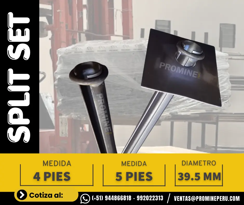 Sistema de sostenimiento inmediato que trabaja por fricción contra la roca. Ideal para estabilización rápida en labores subterráneas. Solicita más información PROMINE - SEDE LIMA: Consultas: Móvil | WhatsApp Celular: 944866818 - https://wa.link/bkcrr3 Correo: ventas@promineperu.com Catalogo: https://heyzine.com/flip-book/5eb58e72af.html