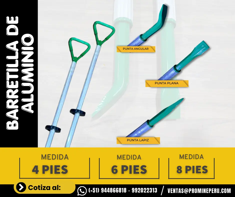 Herramientas ligeras y resistentes para desatado de rocas sueltas, mejorando la seguridad en labores mineras. Solicita más información PROMINE - SEDE LIMA: Consultas: Móvil | WhatsApp Celular: 944866818 - https://wa.link/bkcrr3 Correo: ventas@promineperu.com Catalogo: https://heyzine.com/flip-book/5eb58e72af.html