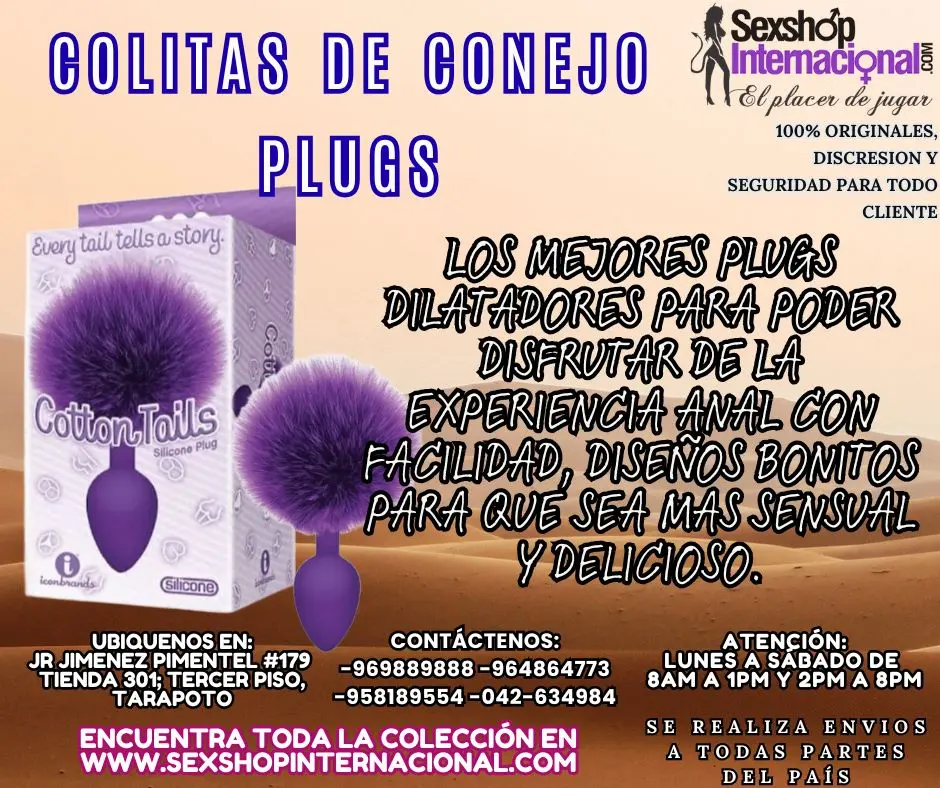 Envios a todas partes del país. PLUGS ANALES COLITAS DE CONEJO SUAVES EN TARAPOTO LOS MEJORES PLUGS DILATADORES PARA PODER DISFRUTAR DE LA EXPERIENCIA ANAL CON FACILIDAD, DISEÑOS BONITOS PARA QUE SEA MAS SENSUAL Y DELICIOSO. Visitenos en nuestra tienda y velo por ti mismo, que no te lo cuenten. SESHOP INTERNACIONAL TARAPOTO Nos puede ubicar en el Jr. Jimenez Pimentel #179 Tienda -301 Tercer Piso- TARAPOTO-PERU REF:ALTURA PLAZA DE ARMAS COSTADO DE CAJA HUANCAYO Realizamos envíos a nivel nacional e internacional. https://sexshopinternacional.com/ www.sextoyslima.com www.tiendasamor.com www.fantasiasexsual.com