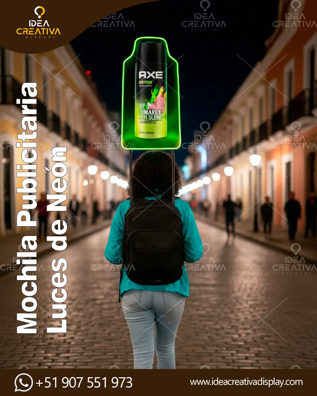 Haz que tu marca destaque en movimiento con una mochila publicitaria LED diseñada para captar la atención en calles, eventos y activaciones. Este formato permite llevar tu publicidad directamente al público, generando visibilidad constante y mayor recordación de marca en zonas de alto tránsito. Ideal para empresas que buscan impactar en exteriores y diferenciarse en campañas BTL. Publicidad en movimiento Iluminación LED de alto impacto Alta visibilidad en exteriores Ideal para activaciones y eventos Ligera, práctica y funcional Perfecta para ferias, campañas promocionales, activaciones de marca y publicidad en vía pública. Trabajamos soluciones publicitarias que ayudan a las empresas a destacar y posicionarse mejor en cada acción. WhatsApp: 51 907 551 973 WhatsApp: 51 945 613 471 https://www.ideacreativadisplay.com/