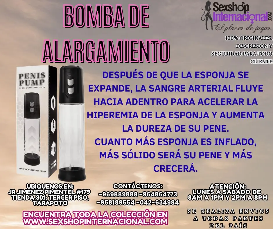 Envios a todas partes del país. LA MEJOR ERECCION ES UNA BOMBA DE SUCCION TODO EN TARAPOTO Después de que la esponja se expande, la sangre arterial fluye hacia adentro para acelerar la hiperemia de la esponja y aumenta la dureza de su pene. Cuanto más esponja es Inflado, más sólido será su pene y más crecerá. Visitenos en nuestra tienda y velo por ti mismo, que no te lo cuenten. SESHOP INTERNACIONAL TARAPOTO Nos puede ubicar en el Jr. Jimenez Pimentel #179 Tienda -301 Tercer Piso- TARAPOTO-PERU REF:ALTURA PLAZA DE ARMAS COSTADO DE CAJA HUANCAYO Realizamos envíos a nivel nacional e internacional. https://sexshopinternacional.com/ www.sextoyslima.com www.tiendasamor.com www.fantasiasexsual.com