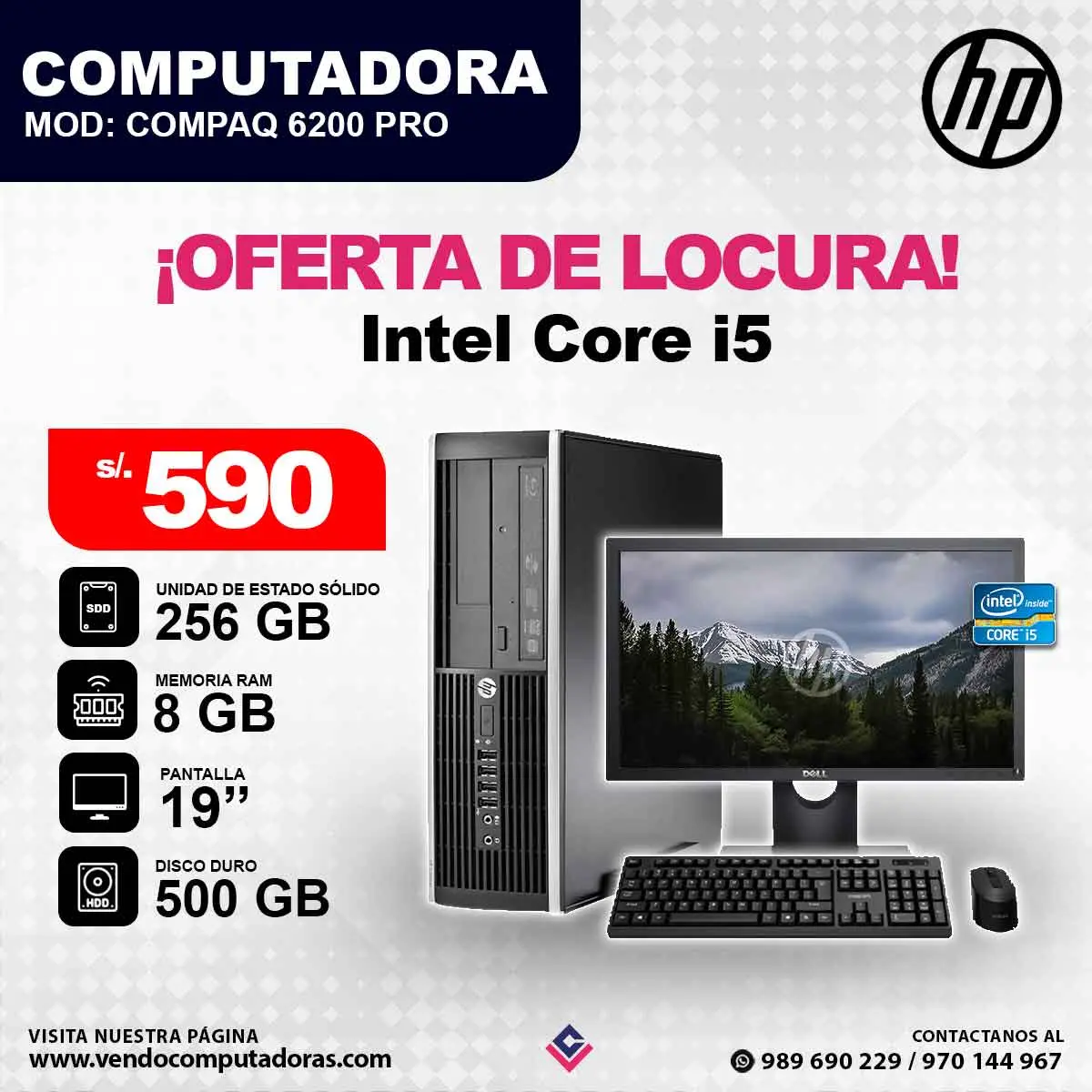 La oportunidad que buscabas para renovar tu escritorio con tecnología de alto nivel está aquí. Especificaciones: Intel Core i5 | RAM 8 GB | SDD 256 GB | HDD 500 GB Modelo: Compaq 6200 Pro Small Form Factor Pantalla: 19 Lista para usar desde el primer minuto. Mouse y teclado ¡GRATIS! Ideal para trabajo, estudio u oficina Entrega rápida en Lima Garantía asegurada Escríbenos al 989 690 229 o al 970 144 967 ¡No te quedes sin la tuya!