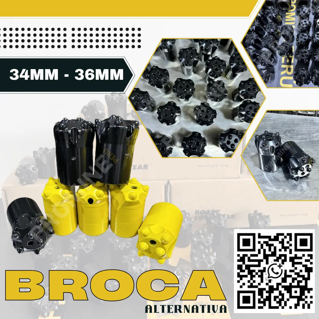 Venta de brocas para perforación minera en medidas 34 mm y 36 mm. Diseñadas para alto rendimiento en perforación de roca. Compatibles con equipos neumáticos y maquinaria minera. Solicita más información SEDE LIMA: Consultas: Móvil WhatsApp Celular: 944866818 - wa.me/51944866818 Catalogo: https://heyzine.com/flip-book/5eb58e72af.html