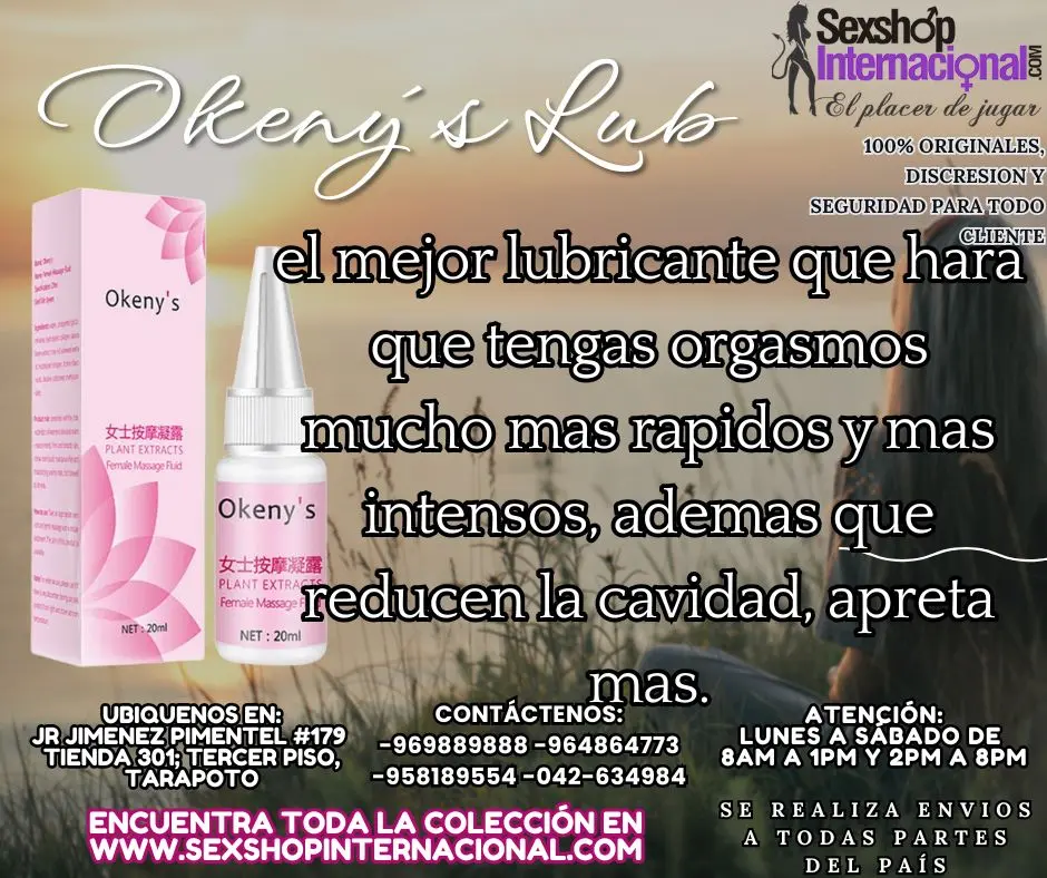 Envios a todas partes del país. AUMENTA LA EXITACION CON OKENYS LUBRICANTE ESPECIAL EN TARAPOTO el mejor lubricante que hara que tengas orgasmos mucho mas rapidos y mas intensos, ademas que reducen la cavidad, apreta mas. Visitenos en nuestra tienda y velo por ti mismo, que no te lo cuenten. SESHOP INTERNACIONAL TARAPOTO Nos puede ubicar en el Jr. Jimenez Pimentel #179 Tienda -301 Tercer Piso- TARAPOTO-PERU REF:ALTURA PLAZA DE ARMAS COSTADO DE CAJA HUANCAYO Realizamos envíos a nivel nacional e internacional. https://sexshopinternacional.com/ www.sextoyslima.com www.tiendasamor.com www.fantasiasexsual.com