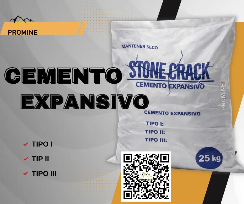 Cemento expansivo Stone Crack de 20 kilos, ideal para trabajos en minería y demolición controlada sin uso de explosivos. Diseñado para generar alta presión de expansión, permite fracturar roca de manera segura, silenciosa y eficiente, reduciendo riesgos en zonas de trabajo. Es una excelente alternativa para labores en espacios confinados o donde se requiere precisión en el corte. Contactar: 903196281