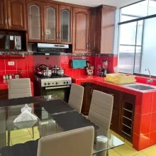 • Sala comedor cocina con reposteros y lavandería con tendal, baño completo , dos dormitorios con closet uno de ellos con baño incorporado, walking closet ,bar enpotrado y cuarto de servicio con baño.